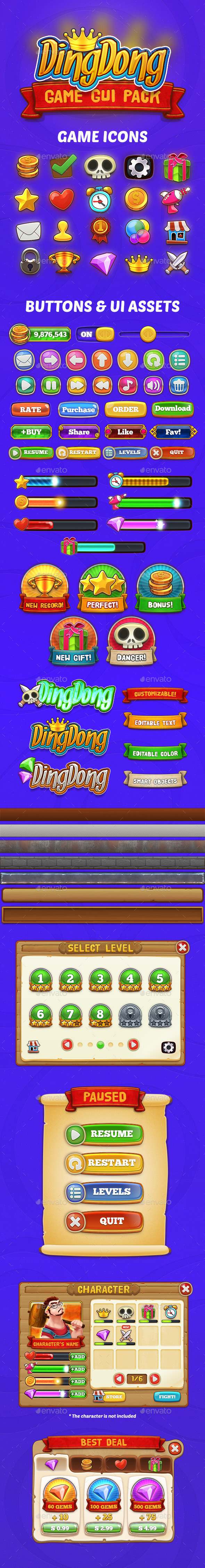 Discover DingDong: Game GUI Pack and download over 709,197 Fonts, Logos, Icons, Graphics, Flyers, Brochures, Card Templates, PowerPoint Templates and Design Templates and more from only $2. JOIN NOW